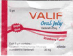 La gelée de Levitra (Gelée orale de Valif) est faite par Ajanta Pharma et la haute concentration de Vardénafil dans ce produit fait qu'il fonctionne plus rapidement et mieux comparé aux autres marques de gelée sur le marché.